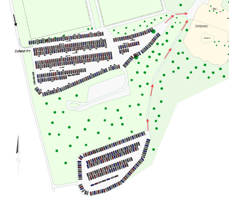 In den drei Unterpunkten könnt Ihr jeweils die Infos für die Zufahrten zu den Parkplätzen und die Einteilung auf den Parkplätzen finden (Lektüre besonders empfehlenswert für alle, die mit Wohnmobilen/Vans etc. anreisen!). Vor Ort werdet Ihr auf P1-P4 sowie auf dem Wohnmobilstellplatz von Ordnern eingewiesen, wir bitten Euch ihren Anweisungen unbedingt Folge zu leisten.